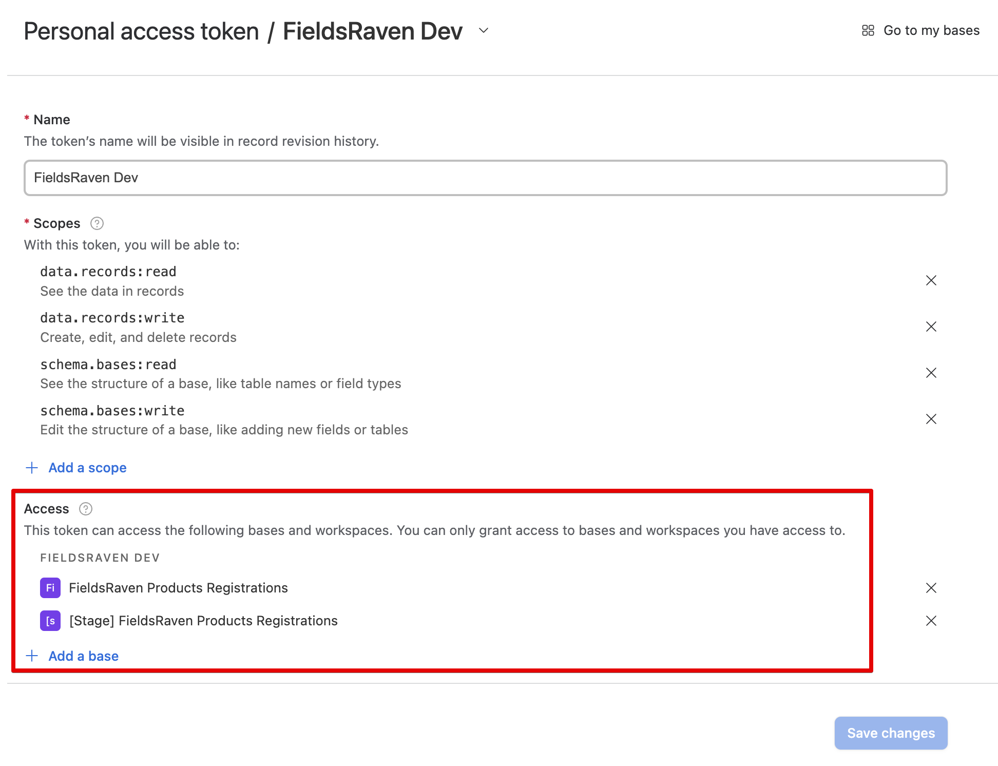 Create personal access token, make sure that the scope includes data.records read/write and schema.bases read/write